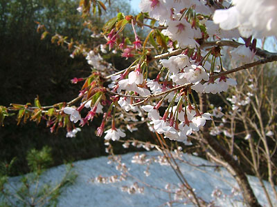 537 大型連休気分♪&スケッチ(^-^;) (08/4/29)昨日は、果樹の受粉など、庭でウロウロしてたので、「今日は連休気分を味わいたいね」と言うことで泥湯温泉までドライブ♪ 今回は、泥湯温泉の少し手前から、川原毛地獄のお地蔵様の写真が撮りたくて寄り道して来ました (*^-゜)v 新緑と残雪が綺麗で写真のアップしたいのですが、 まずは、目的の 「川原毛地蔵菩薩」 をご覧下さいませ〜♪ ![]() ![]() 引き返して、目的の泥湯温泉に行き、県外の方達(山形県・宮城県など)とのふれあいを楽しんで来ました〜♪、 ![]() ![]() それから、上までドライブして、恒例の川原毛地獄に行ったら、まだまだ残雪があったり、マンサクの花が咲いていたり、タムシバ(コブシより小さい花)や山桜も咲き始めかな〜♪ ここが、今日の「川原毛地獄」の様子でした。 ![]() ![]() 再び戻って、又、温泉♪ 何と京都から車で来られたというご夫婦にも会い、東北が好きでGWにはよく来られるそうです。そう言って頂けると、とても、嬉しいですね〜♪ 温泉帰りにスケッチ場所探して、あちこち立ち寄り、ジュンサイ沼キャンプ場で、沼を描かず西方向の残雪と新緑の景色が気に入って スケッチしましたが、30分くらいで描いてしまったかも〜(^-^;) ![]() ![]() 同じ場所で描いた主人の絵も こちらのページからワイドの絵が、ご覧になれます(*^-゜)⌒☆ ![]() そうそう、ドライブ中に「ガソリンスタンド・オープン」で賑わうお店に入ったら、何と会員でもないのに ゲームでスロット777、ハイオクが135円で給油出来たり、 開店最終日とかで、綺麗なお姉さんから、祝いの生花をお土産に沢山頂いて来ました〜♪ ティッシュ5箱も記念品とかで頂き、何とラッキーな日に、給油出来ましたよ (*^-゜)v この、生花が頂いた物です♪ |