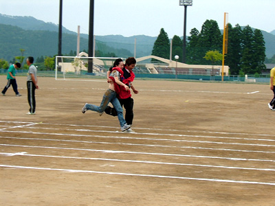 NO.561 地域別、市民運動会〜♪ (07/6/29)梅雨入り宣言後、殆ど雨も振らず、やっと纏まった雨予報が出たのですが、今日は恒例の運動会。午前中は曇り空、暑くもなく快調に始まりました♪ 今年の会場は、恒例の地元小のグランドではなく、鳥海中グランドで行われ、 今年も日焼け気にせず、楽しめましたよ(*^-゜)v 今年も近所のオバちゃん車に乗せて、会場へ9時前到着。 普段なかなか会えない人達に逢えるのでお喋りが出来て楽しいですね〜(^^♪。 地域のコミュニケーション&活性化の為に色んな行事にはなるべく参加したいと思っています♪ 今年の様子、一部ご紹介しますね〜。 取材のつもりが、参加してしまったので、メインの写真がありません。。。(~o~) 開会式の様子。バックは中学校舎。 右は「おとめでござーる」リレーなのに得点付きません。1位だったのに...(~o~) ![]() ![]() 「集団縄跳び競争」は3位と「綱引き」はトーナメント・・で(~o~) ![]() 「あつあつレース」あ〜、色っぽ〜い♪ 右下は、大きなパンツを男女で着て走ってます。 ![]() ![]() 途中経過の掲示版。 ここまでは、良かったのよね〜♪ 閉会式は雨の中〜。。。┐(-。ー;)┌。。。 ![]() 今年も息子のようなイケメンお兄ちゃん(もちろん知り合い)と ペアー組んで(得点付き)2位、 4種目リレーなども参加(得点付き)3位。 しか〜〜し、最終結果、地区別5チーム中 我が地区(下川内)言えない。。。(*^m^*) こちらのページで昨年の観ます?(*^m^*) 昼食後、予報通り、雨が降り出しましたが、何とか無事終了! 以上、地元情報でした〜♪ |