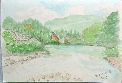 NO.582 北京五輪開幕記念日スケッチ(*^m^*) (08/8/8)(08/8/8)と、 8が並ぶ末広がりの縁起良い日付けをスケッチ入れたく、近くの子吉川に誘われました。 ここは、由利本荘市鳥海町・小栗沢集落付近の風景。暑いので、狭い車の中で短時間スケッチです(^-^;) 同じ車内ですが、比べてもイイですよ〜(^^;☆\(▼▼#) ・*:..。o○☆*゚¨゚゚・*:..。o○☆*゚¨゚゚・*:..。o○☆*゚¨゚ ・*:..。o○☆*゚¨゚゚・*:..。o○・*:..。o○☆*゚¨゚ ・*:..。o○☆*゚¨゚゚・*:..。o○ ![]() ![]()