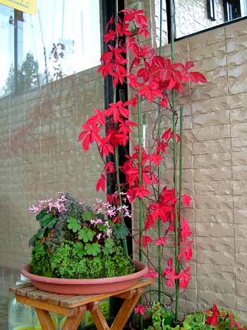 NO.568 地元の紅葉スケッチ♪ (08/10/10)今日キノコ探しの山歩きでしたが、我が家の行く所なんて、皆が行くとこなので、な〜んにも有りません\(☆^∇゚)o ここは、村木に行く途中、村木にある溜め池を上から撮った写真。結構、紅葉が始まってました〜♪ 今日の現場は、由利本荘市鳥海町・村木にある溜め池です。この辺は既に紅葉が始まっていて、 ナナカマドの鮮やかな色彩が目につきましたよ〜。だんだん、空の様子が怪しくなって、短時間スケッチ(^-^;) 今日は、主人のスケッチ風景です(^-^;)。 手前の絵も、だいだい出来上がり〜(^-^;) 今回の絵、狙いは同じなのに、きんぎょの絵は、な〜〜んか、秋っぽくないのは、色の選択ミスね〜(^-^;) 自宅に帰宅して撮った、我が家の秋。 満開の大文字草(ダイモンジソウ)ですが、まだ、真っ赤な種類は、これからです(☆^∇゚)o ![]() こんな感じで、パイプの棚に並んでいます。 右下は、蔦紅葉かしら? 毎年真っ赤に紅葉してくれて、小さな我が家の秋です\(☆^∇゚)o ![]() |