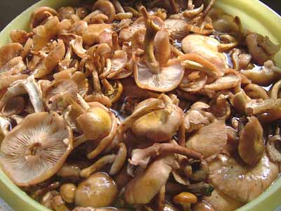 NO.573 今日も健脚美人&スケッチ♪ (08/10/17)右下は、たまたま見つけたまっ白いキノコ。 可愛いね〜。ホコリタケという中が白いうちは食用です。 ![]() 1時間も歩くと、カラマツ林があり、こんなにも落葉キノコ(ハナイグチ)が〜〜♪ ![]() 今日の鳥海山は、こんな感じで見えました〜♪ うっすらと薄雲がかかり、秋霞っぽいですね〜 今日の現場は、由利本荘市鳥海町・沢内方面の山道での風景。里から鳥海山とは対称の位置にある八塩山系の山に登ったのですが、 標高600mくらいまで登り、帰りがけ描いた鳥海山です。 主人は簡単な絵を2枚描いてますので、水彩スケッチクリックしてね〜(*^-゜)v 帰宅後、収穫した落葉キノコを洗って水に浸したのが左下図。 右下図は山でスケッチ終了後、下山途中偶然知り合いのオジサンに会い、 チャッカリ頂いちゃった“キモタシ“正式名「ナラタケモドキ」で〜〜す♪ オジサンは、15kg以上も背中に背負っていました〜\(☆^∇゚)o ![]() |