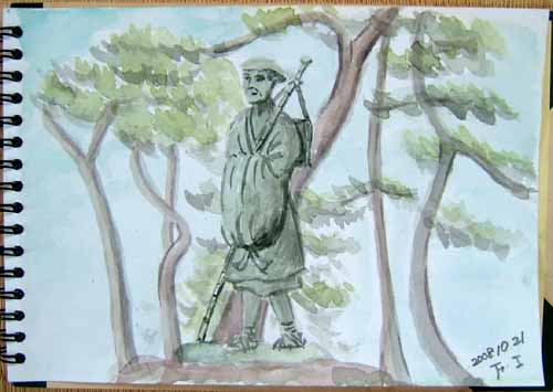 NO.575 蚶満寺散策&スケッチ&温泉♪ (08/10/21)用意したスケッチブックを出してスケッチして来ました♪ 駐車場に掲げてある境内の看板。 境内の一部。少し紅葉してますね〜♪ 今日の現場は、にかほ市象潟町・蚶満寺境内にある松尾芭蕉像です。 「象潟や雨に西施がねぶの花」として詠んで知られる松尾芭蕉ゆかりの地なんですよ〜♪ またまた、描いてるおまけ画像〜〜(^-^;) 描き終わった所に、近くの保育園児が来てたので、見せてあげました(*^-゜)v 主人とは、芭蕉の右側と左側に離れてスケッチ、比べていいですよ〜(*^-゜)v 昼食を済ませてから、近くの温泉(サン・ねむの木)でゆっくり浸って、極楽、極楽〜♪ 硫黄の香りがする温まりのお湯で、けっこう穴場的存在って感じですね〜 〜\(☆^∇゚)o 写真は、温泉と温泉から見える今日の午後の日本海♪ ![]() 帰宅途中の由利原高原です。 コスモワールドのコスモスが、まだ真っ盛り〜♪ 夏場は、百合の花が綺麗な場所ですよ〜♪ |