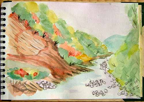 NO.581 珍らしいキノコ&スケッチ♪ (08/10/30)先ずは、美しい山の中の紅葉、ご覧下さいませ〜♪ このキノコ、マスダケに似てるけど違います。裏は網目になってて、見たことないキノコ。 絶対、毒キノコですね〜\(☆^∇゚)o ![]() わ〜〜、今年2度目の「スッポン」を発見。 臭い、臭い、これ、食用って本に出てましたが、 絶対食べられませんね〜\(☆^∇゚)o 日記ネタに、アップしました〜♪ (^^;☆\(▼▼#) で、このまま、帰らず、スケッチを〜(^-^;) 今日の現場は、由利本荘市鳥海町・牛越と下伏見の間にかかる橋からの子吉川の風景です。 地層が出ていて目立つ場所として知られており、 数年前、東大の地質研究グループと先生が視察に来てましたよ 紅葉より、 地層を描きたかったのですが、どうかな〜(^-^;) 今日の絵は、狙が少し違いますので、比べてもイイですよ〜\(☆^∇゚)o |