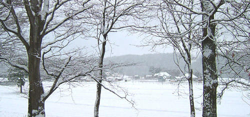 NO.604 8日ぶりに雪景色スケッチ♪ (08/12/15) 反対側の空には、大森山に傘を被ったような雲を発見♪ で、今朝起きると、ご覧のような雪景色♪ 積雪は5センチ位かな〜(^-^;) (車庫前の道路から、鶴田集落をAM:8時頃撮影) 朝食後早速、8日ぶりの雪景色スケッチに誘われ、あちこちドライブ。 今日のスケッチの現場は、由利本荘市鳥海町姥ヶ懐の牛舎と柿の木でした。 で、本日の出来上がり〜♪ 屋根の形が5角形、残雪が難しいかったですが、雪景色の雰囲気出たかしら?(^-^;) やはり同じ狙いですが、比べてみます〜?\(☆^∇゚)o (^^;☆\(▼▼#) そうそう、昨日の夜、 NHK大河ドラマ『篤姫』が1最終回を迎えましたね〜 毎回、一度も欠かさず、時には再放送も何度も観たりして、楽しみました♪ 昨日は『篤姫』最終回視聴率28.7%、全50回すべてが20%超え 過去10年で最高記録となったそうですよ。 |
