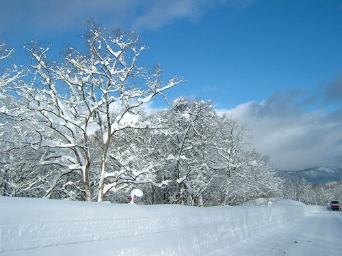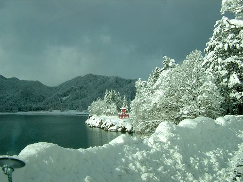 NO.621 乳頭温泉郷と田沢湖です♪ (09/1/28)25日は、早朝から自宅周りやお隣の除雪したばかりなのに、出かける当日26日も除雪に追われ、 (ノ_-;)ハア… それでも、元気を出して乳頭温泉郷までのドライブですが、前が見えない悪天候でした (ノ_-;)ハア… 2時半にチェックイン、一休みして早速温泉に〜「あ〜、極楽、極楽〜〜♪」 乳頭温泉郷には色んな有名な温泉宿ありますが、殆ど宿泊済み。ここは、初めての温泉施設でした。 神奈川県から湯治客も来られてましたし、親孝行な娘さんが、母親連れて水戸から来られていたり、 関東方面のお客さまに、相変わらず豪雪の雪見露天は人気がありますね〜♪ 内湯の大浴場も、泉質の違う二つの湯を堪能出来ましたよ\(*^∇^*)/ 夕食はバイキング、予約したプランには、お酒のサービスもあり、 にごり酒(期間限定)がメチャ美味しかったです〜(=^▽^=) バイキングの種類も豊富、大好きなスィーツは別腹で「あ〜、メタボなんてカンケイネイ〜」(^^;☆\(▼▼#) 宿泊の和室から見える景色は山のブナ林。3階の部屋からの眺めです。 運良く温泉も3階、気軽に何度も浸れました\(☆^∇゚)o いつもなら、アルコールが入ると、バタンキューで爆睡してしまうのに、 今回は最後にコーヒーを飲んだせいか、いつまでも元気 o(*^▽^*)o 朝食もバイキング、ここだけの話ですが、凄い女性(一人で宿泊)が居ましたよ、 ギャル曽根モドキの大食漢、普通の人の3〜4倍は食べてました(^-^;) 夕食の時も隣で大きな女性でしたが、胃袋も大きいのね〜(^^;☆\(▼▼#) チェック・アウトして外に出ると、愛車の屋根には、この積雪 (ノ_-;)ハア… ![]() ![]() 田沢湖スキー場を車中から、撮ったり 乳頭温泉郷から田沢湖に向かう一瞬の晴れ間の雪景色を撮ったり、 田沢湖も、一瞬、陽が注したので撮りましたが、曇天では秋田駒ケ岳も見えず、 わ〜〜、たつこ姫に積もった雪は、まるで、モンスターをおんぶしているみたいね〜 (ノ_-;)ハア… 一応スケッチの用意もしていたのですが、描く場所も無く帰宅(ノ_-;)ハア… |