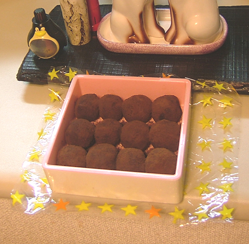 NO.625 男性がバレンタインに欲しいものベスト10 (*^▽^*) (09/2/12)今日は、午前中、フラダンスの練習。 フラ仲間からチョコ頂き、鼻の下がちょっぴり伸びた主人でした♪ ある会社では義理チョコ禁止令が出てる所もあるそうですが、本命チョコは大歓迎とのこと。 理由は色々ありますね〜 (^-^;) で、男性がバレンタインに欲しいものベスト10の中で、 1番は手作りのお菓子(チョコ、ケーキなど)なんですって。 今の若い人でも、やはりハートが入ったお菓子のの方が喜ばれるんですね〜 もっと、詳しくは こちらのページに 紹介されてましたよ で、午後、気まぐれに健康チョコを作りました。ヘルシーな「豆腐のトリュフチョコ」です こちらの方が、高級なチョコより、心が伝わるようですよ〜\(☆^∇゚)o それに安上がりで美味しいですから、一石二鳥ね〜♪ (^^;☆\(▼▼#) あ、作り方なら、 こちらのページ「豆腐のトリュフチョコ」を参考にしました〜(^-^;) パンも焼くので、スキムミルクあるし、チョコは常時買っていますので、 その気になれば、いつでも作れますよね\(☆^∇゚)o |