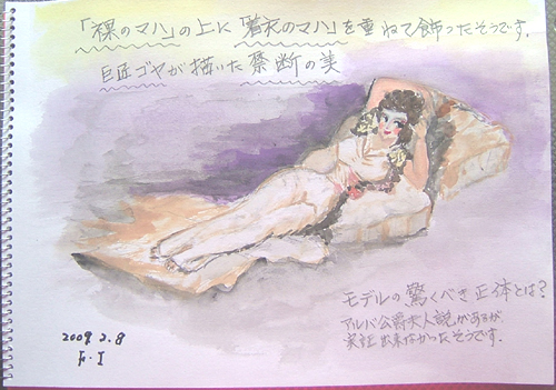 NO.624 2月初のスケッチo(*^▽^*)o (09/2/9)今日は、朝から鳥海山も顔見せしたり、東の空は朝焼けで綺麗でしたよ♪ 何と、11日ぶりにスケッチに出かけて来ました♪ 今日の現場は、由利本荘市鳥海町小川・大坂集落風景。 丸い屋根が面白くて描いてたら、いつの間にか曇って来たり陽が注したり大変(^-^;) ここの道路の冬季間通ったのは初めてしたよ で、今日の出来上がり〜♪ やはリ、今回も同じ狙いですが、きんぎょの絵は、少し右側を入れてます\(☆^∇゚)o チョッと、おまけ画像ですが、図書から借りた本「迷宮美術館」に巨匠ゴヤの 魅惑的な「裸のマヤ」と「着衣のマヤ」が載っていました。 それを見て、昨日の午後、初めてイタヅラした記念に日記ネタとして載せますね〜 (^-^;) 実物より、顔が可愛くなっちゃいました〜 (^^;☆\(▼▼#) 魅惑的と言えば、昨年見切り品の鉢物「カロライナジャスミン」の花言葉が「魅惑」とのこと(^-^;) この花は、別名でイブニングトランペットフラワーというらしく、トランペットの形に似ています。 何処が「魅惑」なのか分かりませんが、 ほのかに香るジャスミンの香りが魅惑的なんでしょうね〜\(☆^∇゚)o 一昨日咲き出したので、記念に撮りました、可愛い花ですよね? 7日更新、「魅惑的なひと」です。 ご興味あれば、覗いてね〜 o(*^▽^*)o 魅惑的なお方とご対面出来ました? きんぎょの「マヤ」絵の方が、魅惑的かも〜〜 (^^;☆\(▼▼#) |