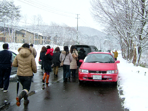 NO.642 偶然とはいえ、奇跡だわ〜♪ (09/3/28)実は、韓国のスター俳優イ・ビョンホンさんが、 テレビドラマ撮影のために秋田県を訪れていました\(*^∇^*)/。 ある、情報で、田沢湖のあるホテルで宿泊していると聞いてはいたので、 もしかしたら? もしかしたら?と、微かな期待を胸に出発♪ しかし、どこでロケしてるのか、色んな情報があって、ロケ現場を当てるなんて絶対無理(^▽^;) 最初は、角館の武家屋敷あたりはどうかな?と、立ち寄ったのですが、外れてしまい、 次に田沢湖のたつこ姫に立ち寄りトイレタイムと思ったら、何と、そこがロケの現場の真っ最中でしたよ! 当然現場付近は駐車禁止で、はるか遠くに駐車。。 ロケの写真撮影は禁止ですが、たつこ姫の前で個人記念撮影は、もちろんOKなので、撮っていると 何と、そこで、ハプニングが〜♪ 俳優のイ・ビョンホンさんは黒幕張って撮影中、当然見えませんでしたが、 韓国の若いイケメンスタッフさんとツーショットを撮って来ましたよ〜\(☆^∇゚)o で、もう一つの、偶然&奇跡は、1泊後の今朝、のんびりチェックアウトして、イ・ビョンホンさんの宿泊してるホテル「イスキア」に 10時頃立ち寄ると、凄い車とフアンの数。 これから、韓国に帰国するということでした。 詳しくは、こちらのニュース でご覧頂けます。 もう、1時間以上も前から、待ってると言う全国から(東京、横浜、岩手、秋田市の人と話しました) 来てるファンに混じって待ってると、すぐ、黒い車で出発するところでした。 ゆっくりと、笑顔でファンに手を振りながら目の前を通過して行く生のイ・ビョンホンさんに 何と結婚記念日に逢ってしまいました〜♪ 本当に、追っかけでもないし、偶然とはいえ、これって奇跡ですよね〜〜\(*^∇^*)/ 幸せ〜♪ (^^;☆\(▼▼#) ・*:..。o○☆*゚¨゚゚・*:..。o○☆*゚¨゚゚・*:..。o○☆*゚¨゚ ・*:..。o○☆*゚¨゚゚・*:..。o○ 以下は、2日間の写真一部です。(動画もありますが、MIXI(ミクシィ)にUPしました(^-^;) 鏡に写った武家屋敷2枚\(☆^∇゚)o ![]() ![]() ナイショで撮った、撮影現場(^-^;) (27日午前11時過ぎ) ツーショトは秘密\(☆^∇゚)o ![]() ここが、撮影現場のおトイレです(イ・ビョンホンさんを見送ってから、トイレタイム) ![]() イ・ビョンホンさん達の宿泊のホテルです。(27日11時半過ぎ) ![]() 秋田空港に向かう所を、追っかけしているファン。(28日午前10時半頃) 黒いバンの車に、イ・ビョンホンさんが運転席の後ろに乗っていましたよ〜♪ ![]() お昼は宿泊ホテルの前に、乳頭温泉「妙の湯」で温泉の梯子♪(27日) ここには、「金の湯」「銀の湯」という混浴露天風呂もありますよ(^-^;) ![]() 宿泊ホテル(今年3度目)の、部屋から見える夜景♪(27日夜) ![]() 3月下旬というのに、宿泊ホテルのツララがビックリするほどこんなに立派でしたよ〜♪ (27日の午後と28日朝のツララ) ![]() ![]() |